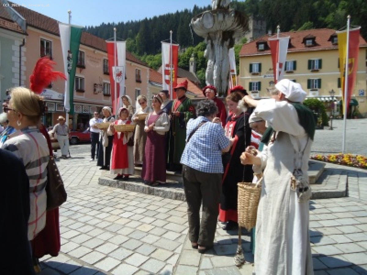 Empfangen werden wir von einer mittelalterlichen Trachtengruppe.