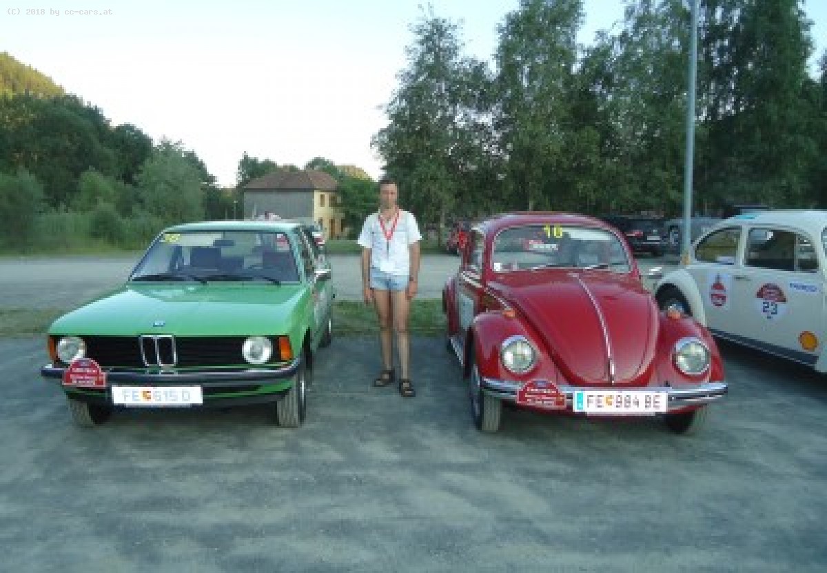 Wir sind mit einem BMW 316 Baujahr 1974 am Start und haben unseren VW Käfer Baujahr 1967 mit im Teilnehmerfeld.